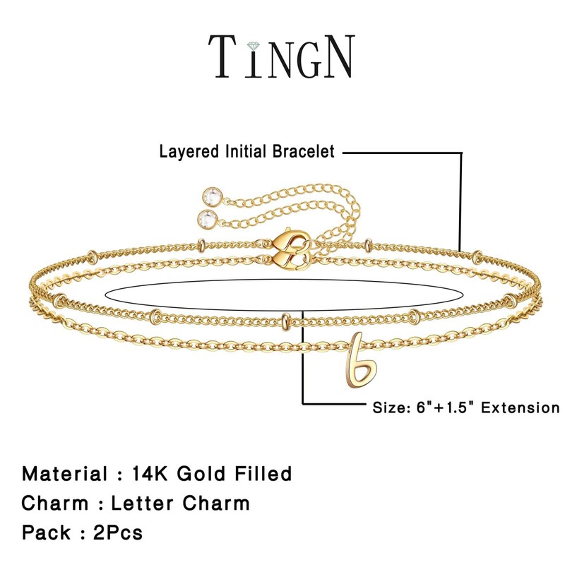TINGN Women's Gold Bracelet, 14 Carat Gold-Plated Bracelet, Women's Gold, Small Bracelets with Letters, A-Z Bracelet Set, Initials Jewellery, Bracelet, Ladies, Girls, Personalised Gifts for Women,