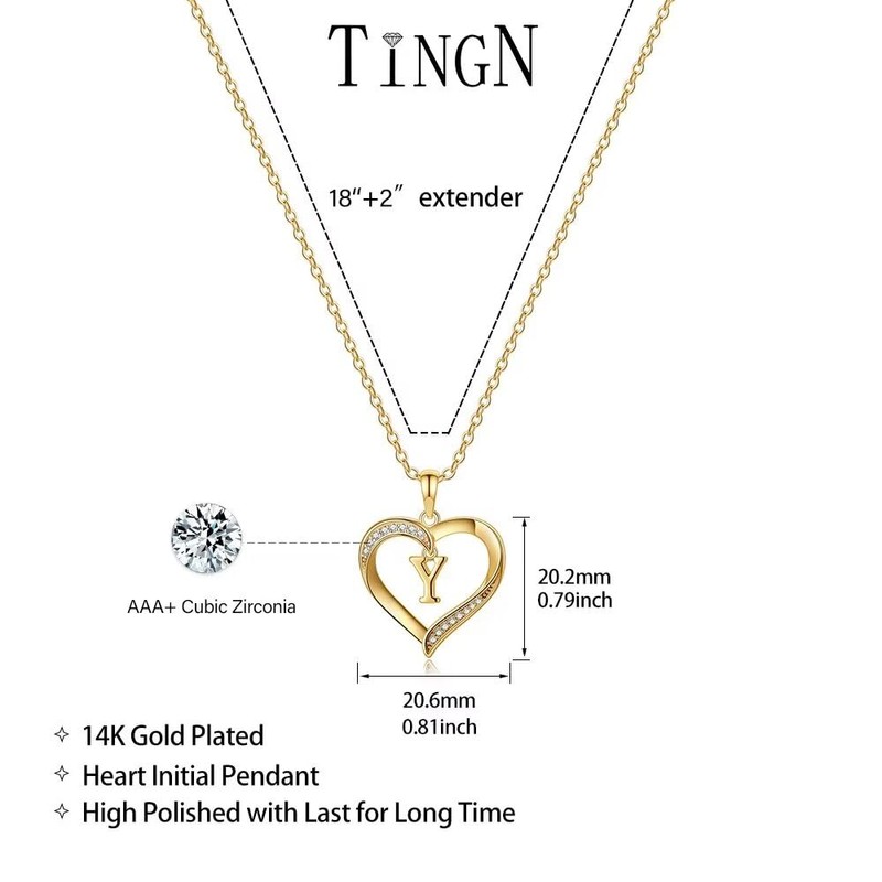 TINGN Women's Gold Chain Necklace, Women's Gold, Gold Chain Women, Chain Gold Ladies, Jewellery Ladies, Chain Heart, Necklace Women, Gifts for Women, Necklace with A-Z Letters, Brass
