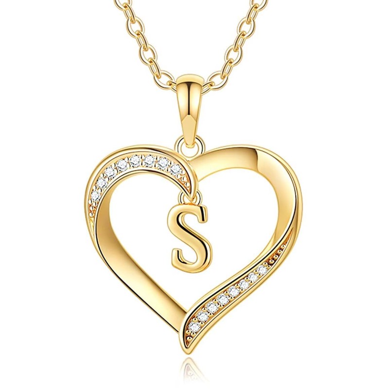 TINGN Women's Gold Chain Necklace, Women's Gold, Gold Chain Women, Chain Gold Ladies, Jewellery Ladies, Chain Heart, Necklace Women, Gifts for Women, Necklace with A-Z Letters, Brass