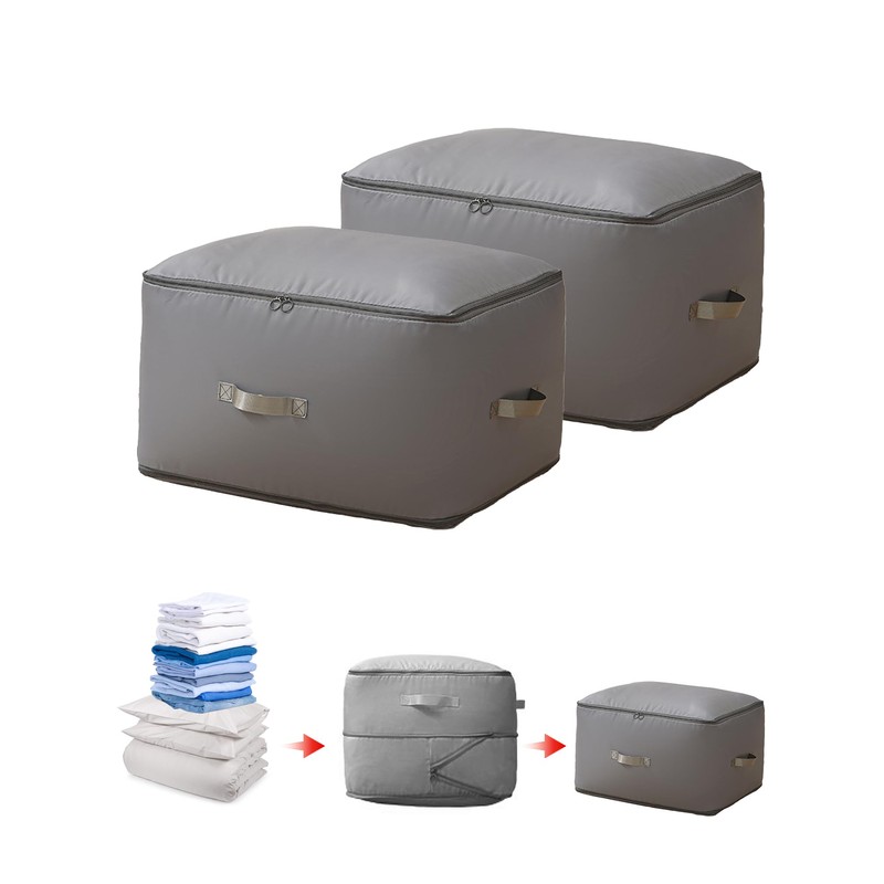 TINGSING 2 Pack Ultra Space Saving Self Compression Organizer, Compression Storage Bag for Comforters, Clothes, Blankets, Heavy Duty Moving Organizer Bags, Compression Packing Cubes for Travel,Grey