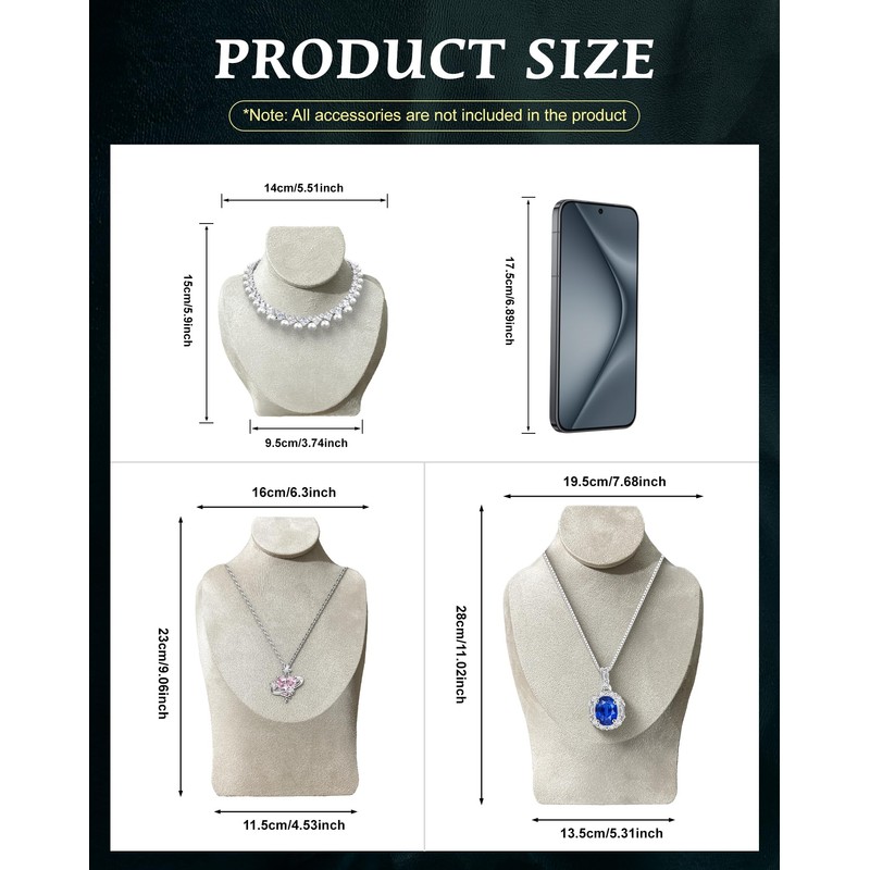 - Perfect Size: Designed with ideal dimensions (Height: 13 cm/5.12 inches, Shoulder Width: 14 cm/5.51 inches), our necklace holder lets short necklaces drape beautifully, ensuring they catch attention whether at home or on display