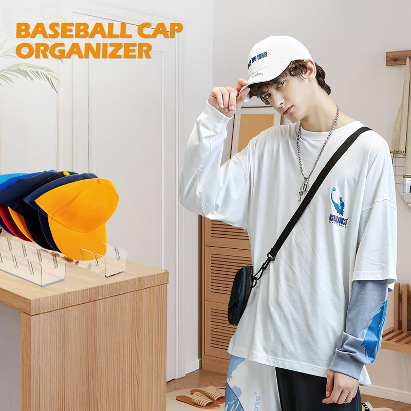 TINGTING Cap Stand for Baseball Caps, No Install Acrylic Hat Organiser, Baseball Cap Holder, Minimalist Hat Holder, Organiser for Displaying Baseball Caps, Cap Holder