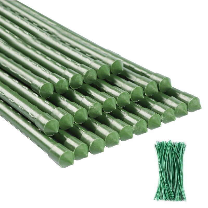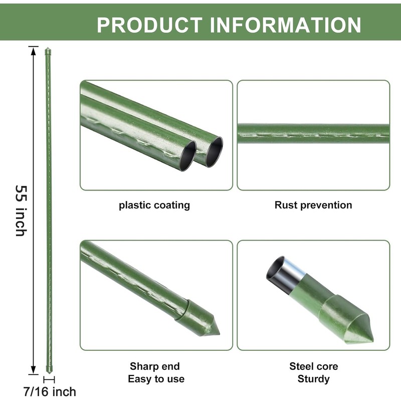 - Garden stakes are made of sturdy hollow steel, which is sturdy and durable. Steel core with green plastic coating for weather and rust protection