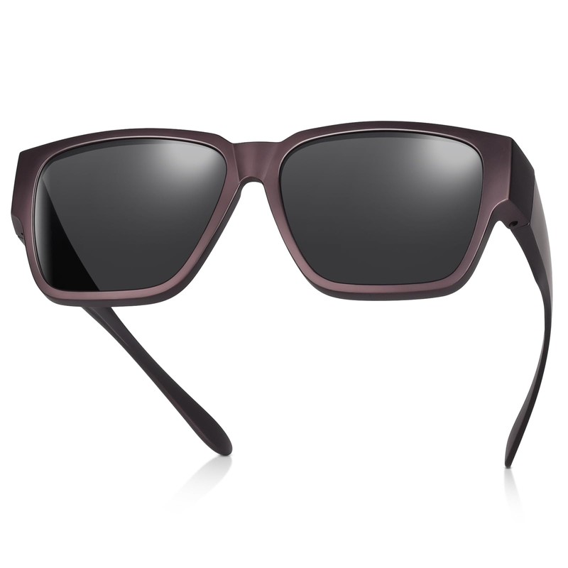 TINHAO Polarised Over Glasses Sunglasses for Men, UV Protection, Trendy Square Sunglasses for Driving and Riding, Matt purple/black