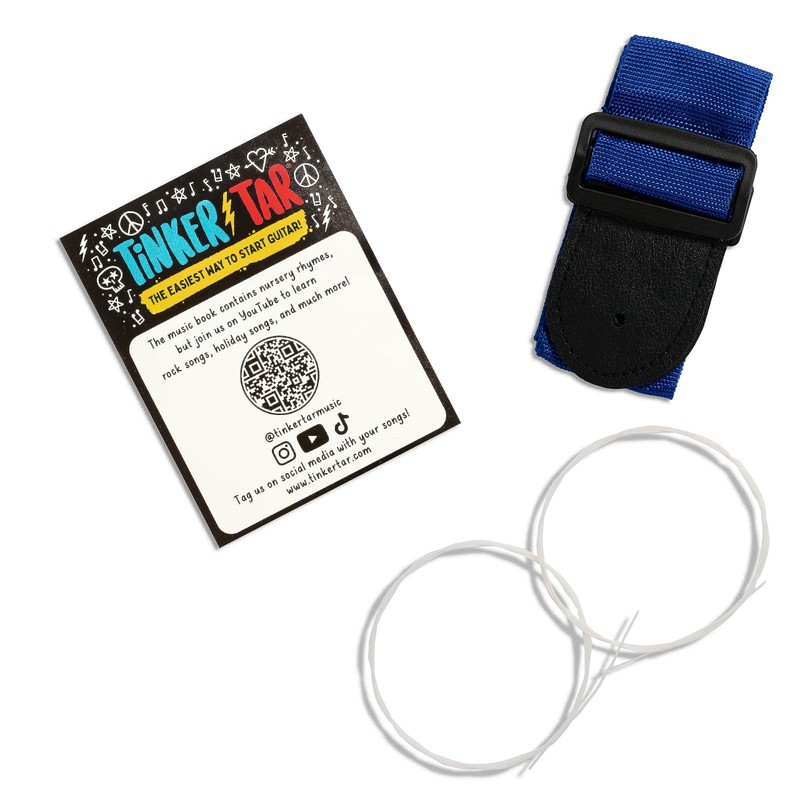 - 1. TinkerTar Includes: 1-String Guitar, Guitar strap, 2 replacement guitar strings, and includes an instructional music book containing 12 kid-friendly songs