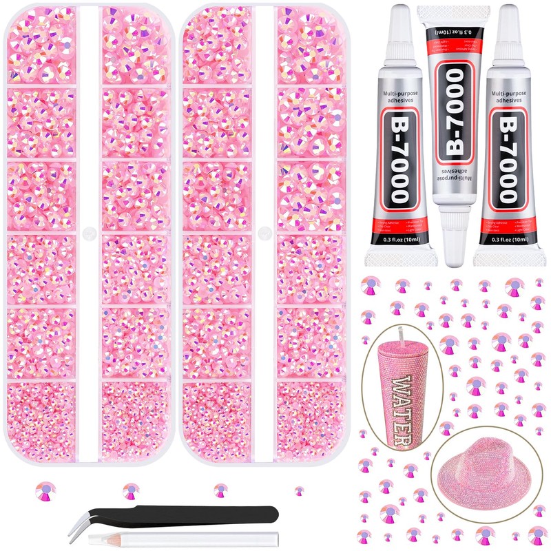 TINKRSTUFF 12100Pcs Jelly Resin Rhinestones for Crafting with 3Pcs 10ml B7000 Jewelry Glue, 2 Boxes Flatback Crystals Diomand (Light Pink AB) for Bedazzling Crafts DIY Nail ArtNon Hotfix Gems for Clothing Shoes