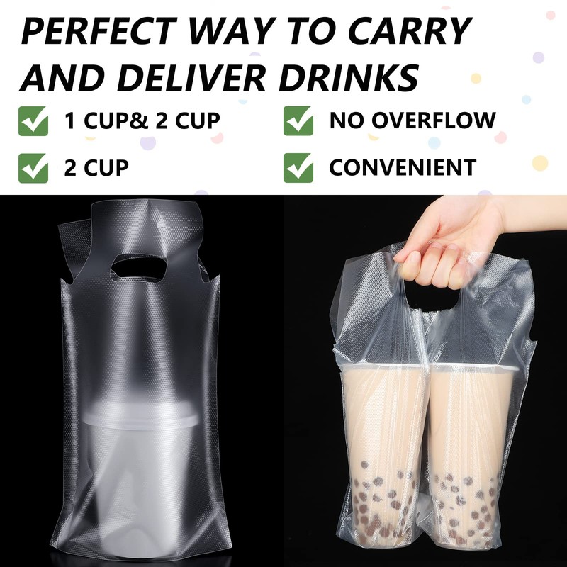 Features:Widely applied:These poly bags with handles can be applied in various places, such as drinking shops, coffee shops, restaurants, home, holiday parties, and more. And they are light and easy to carry.Share with others:The clear plastic cup holder with transparent surfaces, which are nice for various beverages and can be shared with your friends, family members, neighbors, etc.Specifications:Material: polyethylene plasticColor: transparentSize: 16 x 26 cm/ 6.3 x 10.2 inches, 31 x 26 cm/ 12.2 x 10.2 inchesPackage includes:500 x Handle drinking poly bagsNotes:Manual measurement, please allow slight errors in size.The color may exist a slight difference due to different screen displays