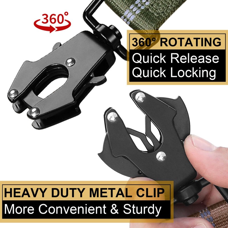 - HEAVY DUTY METAL CLIP: Dog leashes for large dogs heavy duty is equipped with a quick release and locking frog clip, 360° rotating, effectively avoid the tactical dog leashes twisting and tangling.