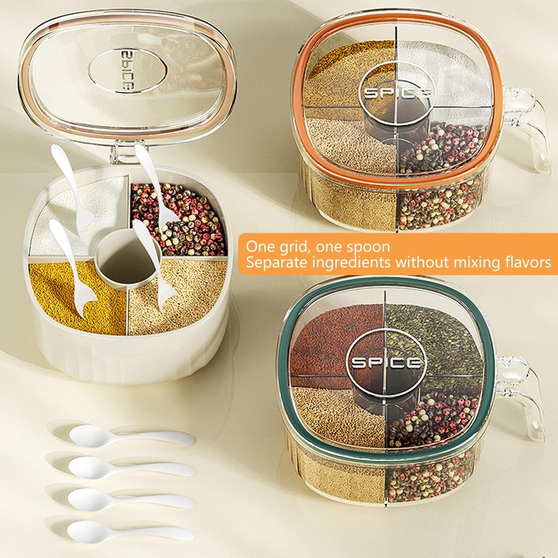 - Package contains 1x 4 space condiment pots, 4x spoons