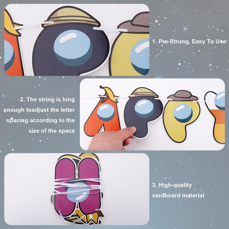 - Game Theme Design: You will receive 2 strings of banners, that can be composed to "Happy Birthday". This birthday banner features playful space astronaut styles, perfect for adding a happy and fun touch to a birthday party.