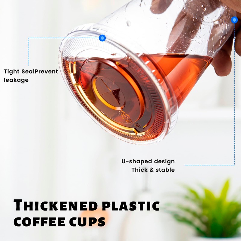- Crystal Clear & Showcases Your Drinks: The transparent PET material beautifully displays your beverage creations—whether it’s creamy foam on top of coffee, colorful layers in a smoothie, or ice swirling in a soda. These coffee cups enhance the visual appeal of your drinks, making them stand out at parties, cafés, and on social media.