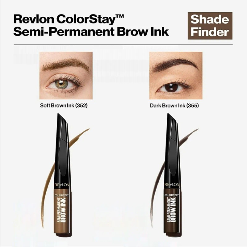 Colorstay™ Tinta Semi Permanente para Cejas ¿Quieres cejas perfectas? Revlon trae para ti la nueva tinta Colorstay™ Semi-Permanent Brow Ink. Es la primera tinta de ceja en el mercado masivo que te dará la oportunidad de tener unas cejas perfectas hasta por 3 días sin invertir tanto tiempo y dinero. Esta tinta de cejas es fácil de aplicar ya que es un multi-función 5 en 1: rellena, delinea, intensifica, cubre o perfecciona gracias a su punta inteligente que te ayudará a crear trazos con efecto pelo a pelo para dejarte un efecto tipo microblanding o cejas laminadas como de salón. También tiene un cepillo estilizador para cepillar, difuminar y perfeccionar tu look en las cejas. Cuenta con polímeros líquidos que crean una película para sellar los pigmentos. No se transfiere, es a prueba de aguas y de manchas. Tampoco lastimará tu piel. ¡Pruébalo en 2 tonos distintos!