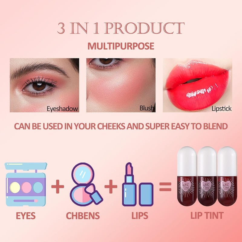Tinte De Labios Y Mejillas 3 En 1, Lápiz Labial Líquido Mini, Mejillas Y Ojos Hidratantes E Hidratantes, Brillo De Labios Resistente Al Agua De Larga Duración (A, Lip Tint)