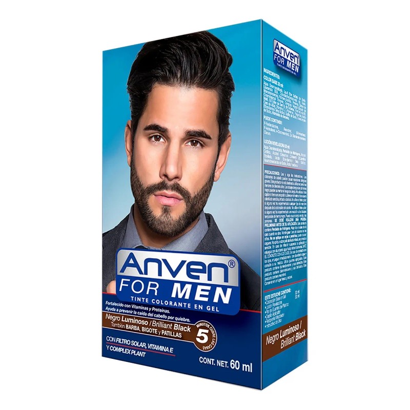 Consigue un look impecable y una apariencia natural en minutos. El tinte Anven For Men en tono Negro Luminoso está especialmente formulado para cubrir las canas de manera efectiva y uniforme en cabello, barba y bigote, proporcionando un color intenso y duradero con un acabado profesional y sin complicaciones.