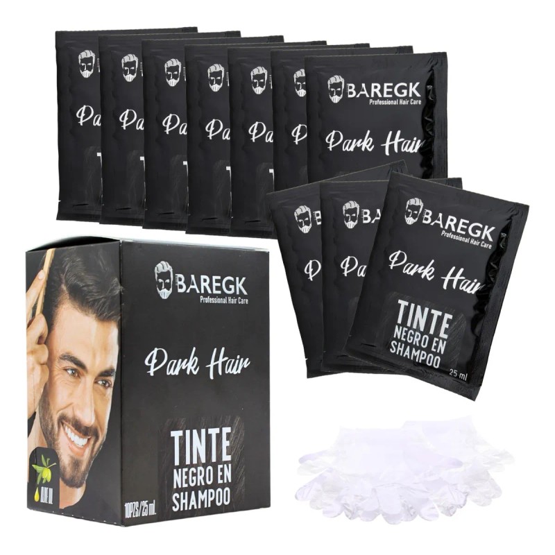 Tinte Shampoo Negro Instantáneo Cubre Canas Baregk 10 Sobres