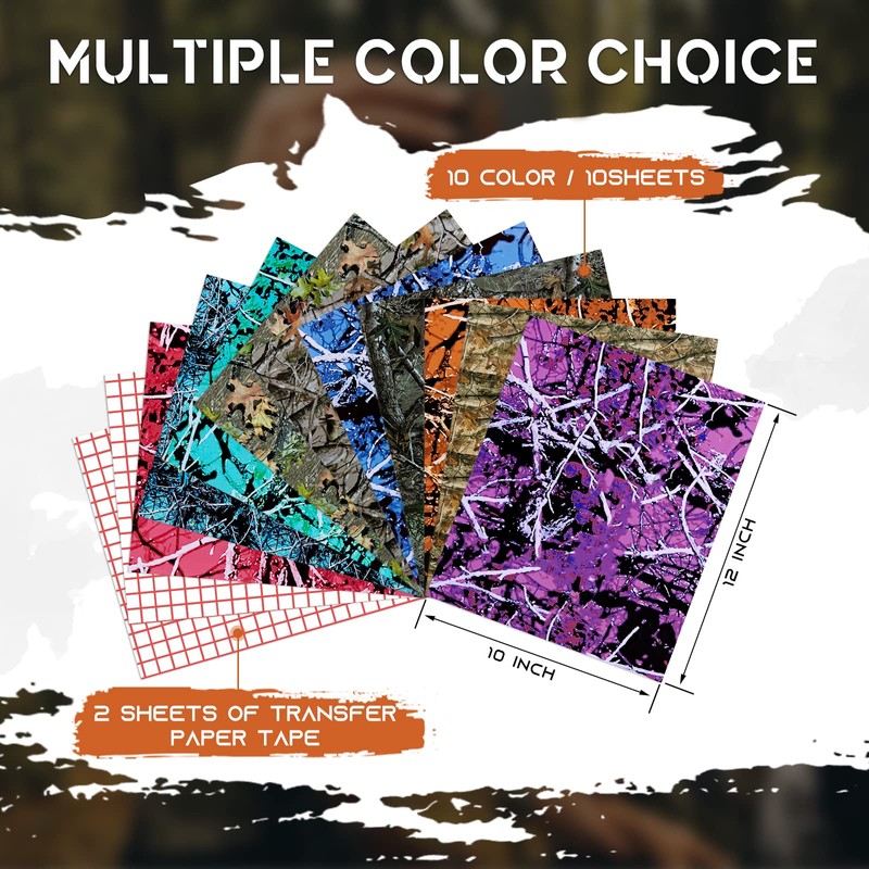 Tintnut Camo Permanent Vinyl - 10 Sheets 12"x10", Real Tree Permanent Adhesive Vinyl, Hunter Pattern Self Sticker Water Proofing Vinyl Compatible with Cricut Or Silhouette