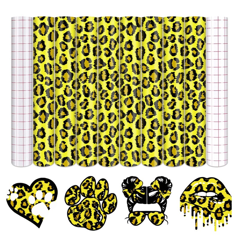 Tintnut Leopard Pattern Permanent Vinyl - 8 Sheets 12"x10" Cheetah Adhesive Sheets Yellow Patterned Permanent Adhesive Vinyl for Cutting Machine,Home Decor Self Sticker