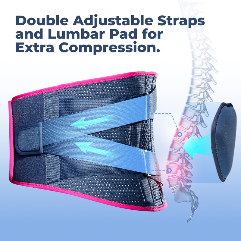 - Pain Relief - Help Straighten Back The diamond-shaped elasticated compression straps on the back spread the support evenly over a large area of the lower back, providing high-pressure support for specific needs. The removable lumbar pads also pull the spine into the correct position to maximise instant back pain relief.