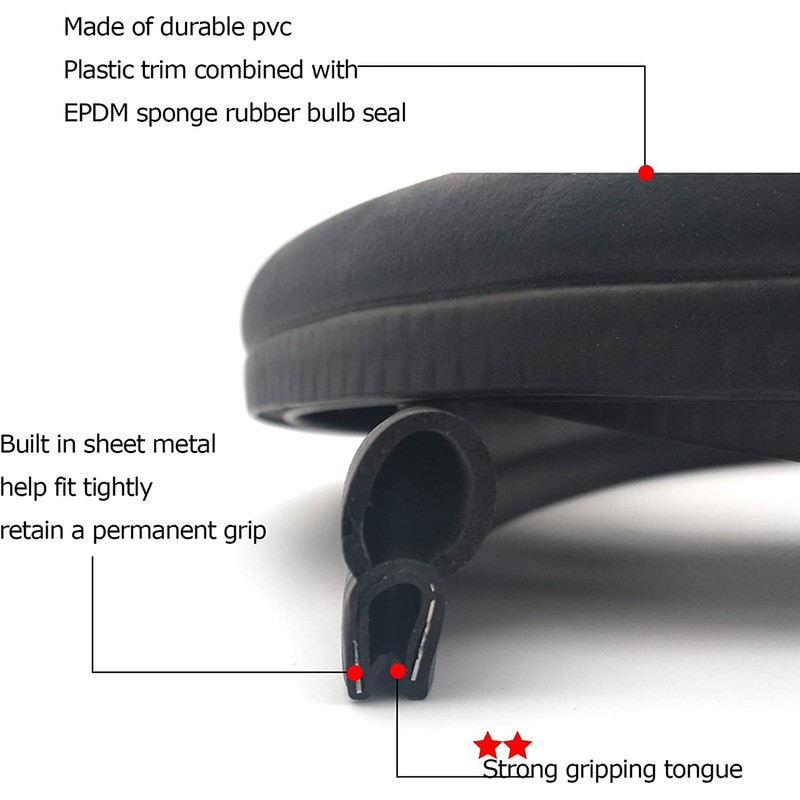 - 🚗[Universal u shape seal strip]: Large bulb size, standard grip range, very flexible.This rubber seal strip provides excellent protection against heat, extreme weather damage, and corrosion. High temperature resistance & cold resistance, prevent ultraviolet light.