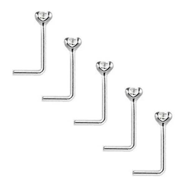 Tiny 1.2mm Clear Crystals Pack of 5 Sterling Silver Thin 0.6mm Bar L Shape Nose Studs