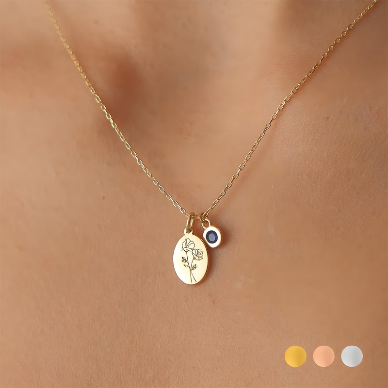 Add a touch of meaning and sophistication to your jewelry collection with this stunning Birth Flower & Birthstone Necklace – a timeless gift for yourself or a loved one.