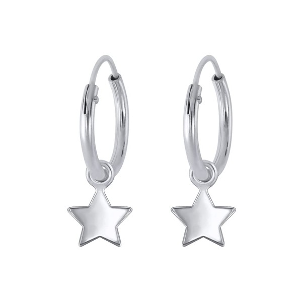 Tiny Dangling Star Hoop Earrings .925 Sterling Silver
