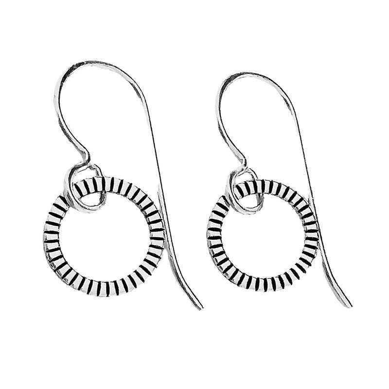 Tiny Etched Open Circle Dangle Earrings | Tiny Little Boho 925 Sterling Silver Dangle Drop Earrings For Women and Girls