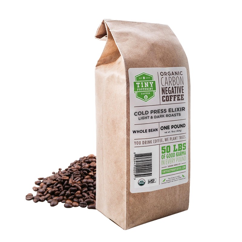 Tiny Footprint Coffee - Organic Cold Brew Cold Press Elixir | Blend of Light & Dark Roasts Whole Bean Coffee | Shade-Grown, Fair Trade & Carbon Negative | 16 Ounce