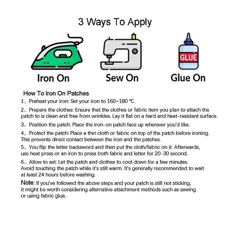 - Step 4: Turn garment inside out and iron for 5-10 minutes to make sure the glue has melted. The patch is fixed on garment firmly.