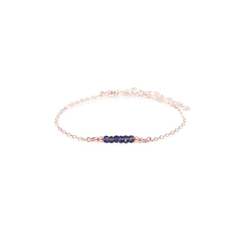 Tiny Sparkling Iolite Faceted Bead Bar Bracelet in 14k Rose Gold Fill