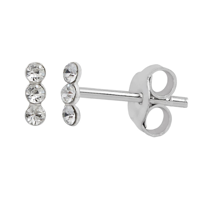 Tiny Sterling Silver Triple Clear CZ Stud Earrings