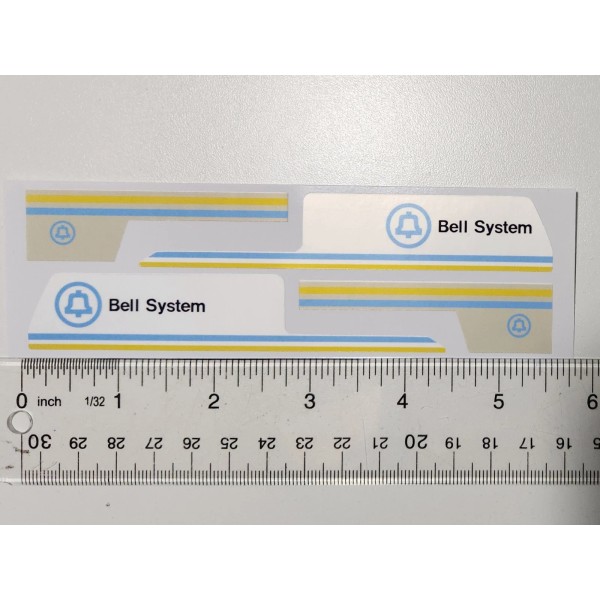 Set of Tiny Tonka Bell System replacement stickers. Includes the 4 stickers shown. Pre-cut. Easy to apply peel and stick. For Tiny Tonka Van and trailer.
