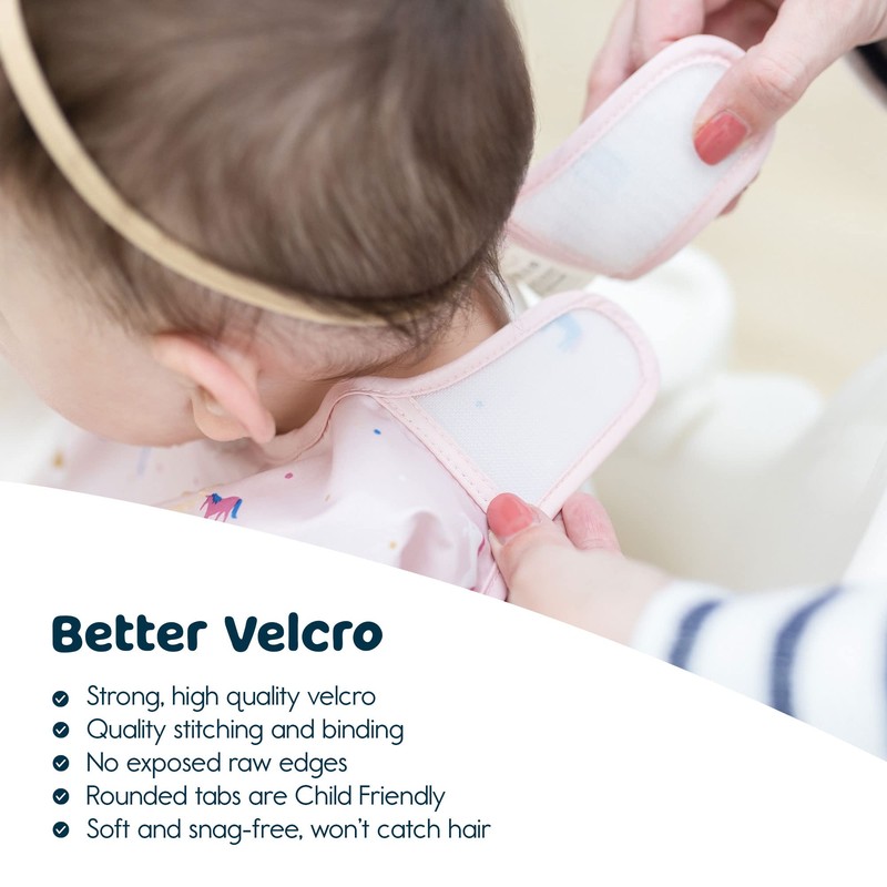 - EASY TO USE: Featuring a tug proof closure that keeps the bib on when you want it and makes removal extra easy, our infant waterproof bibs won't get caught on your little one's hair. Feeding time can be stressful enough without worrying about the mess - our mess-proof kids bibs take the hassle and frustration out of food time!