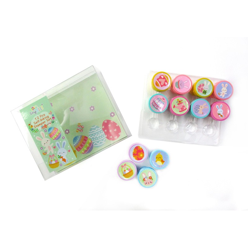 - 12 Easter themed self-inking stamps for kids stamp kit comes in a clear re-usable and keepsake box! Perfect as gifting, stocking stuffers, goodie bag stuffers