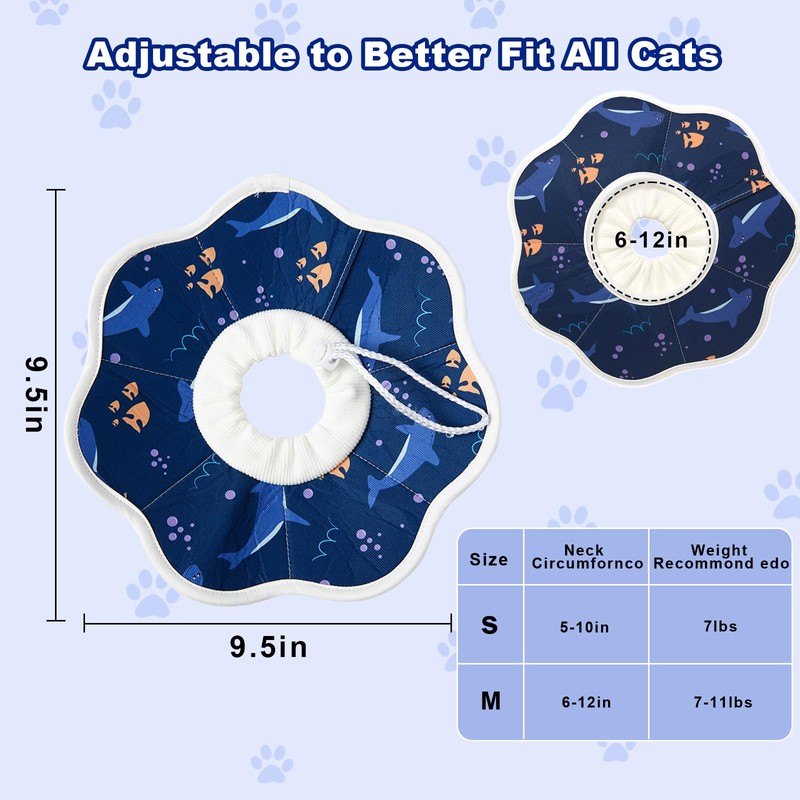 • [Light & Soft Fit] This soft cat cone is made of lightweight material with a soft touch to ensure a comfortable experience for your pet while wearing it. Its adjustable design allows for easy adjustment of the inner diameter of the collar to fit perfectly around your pet's neck, which is not easy to break free and allows your pet to enjoy themselves while wearing it