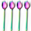 tiokin Sporks,Salad Forks 18/10 Stainless Steel Dessert Forks 7.4 Inches Set of 4 Long Handle Ice Cream Spoons Flatware Set Reusable Fruit Appetizer Dessert Forks for Household Use or Camping