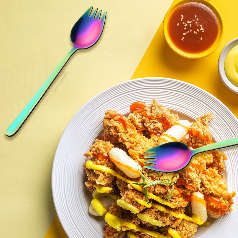 - 【Multifunctional spoons】 The combination of forks and spoons makes our 2-in-1 forks and spoons versatile and reduces the need for multiple pieces of cutlery. Can be used to eat fruit, ice cream, pasta, salad, fried rice, etc. Suitable for home kitchens, restaurants, hotels, camping, dinners, barbecues and parties. The high-quality 2-in-1 fork and spoon are also suitable as a gift for friends and family.