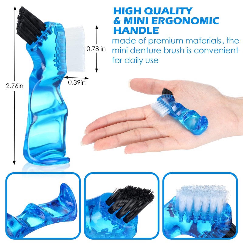 • Thoughtful Handles: the toothbrush handles of our denture cleaning brushes are miniature, with uneven grips that make them easy to hold with wet hands and reliably reach all parts of the denture, enhancing the sense of use