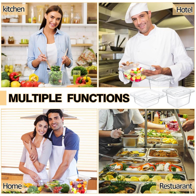 PET Material: made of quality PET material, the food pans are reliable for a long lasting use; With this sturdy material, these pans will withstand daily use and avoid the risk of breaking; these transparent restaurant containers offer versatile usage options; These pans are appropriate for both home and other occasions, such as storing leftovers, fruits, vegetables, organizing ingredients, or even serving dishes at parties or events