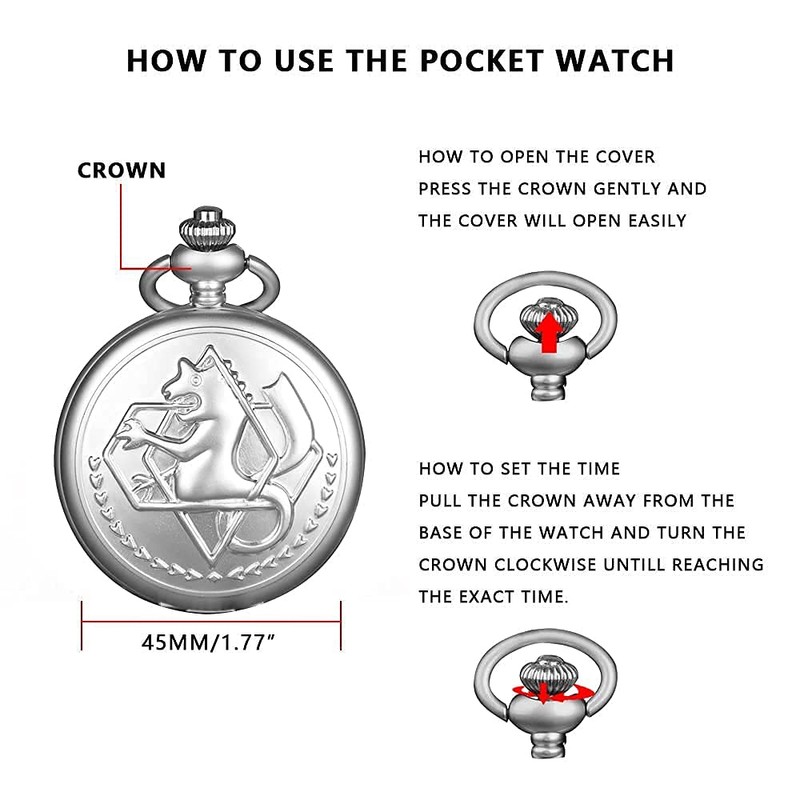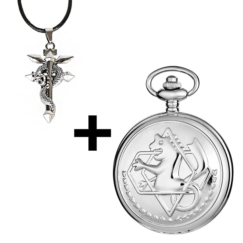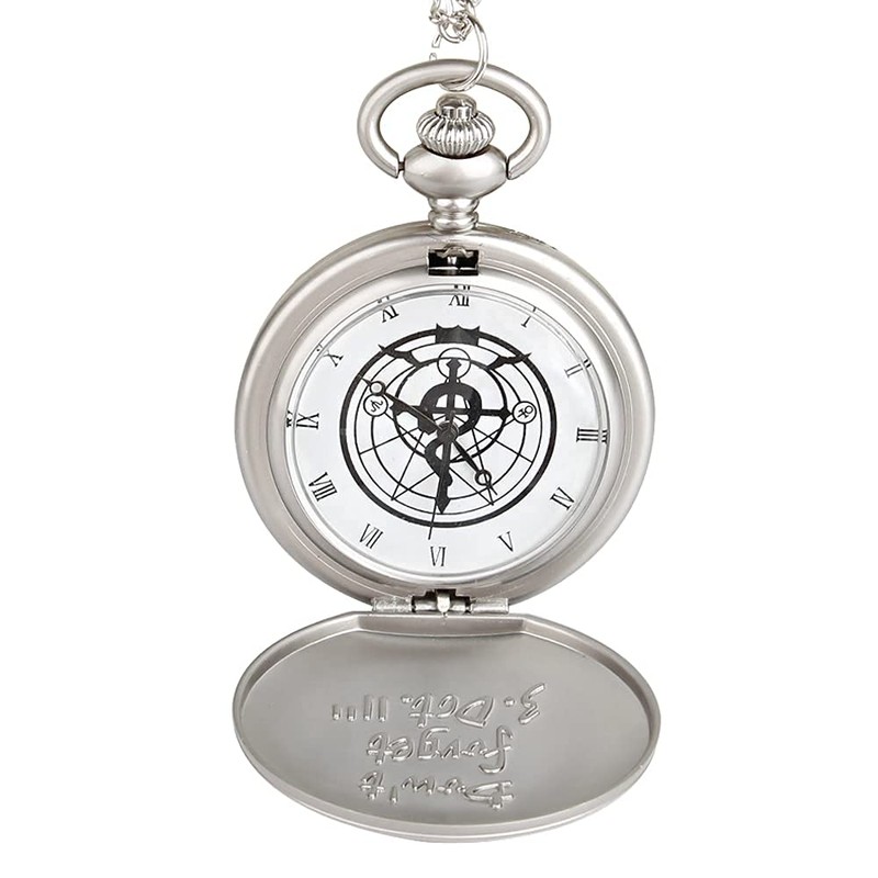 Tiong Fullmetal Alchemist Pocket Watch with Chain for Cosplay Pendant Accessories & Gifts Box Christmas Valentine's Day Birthday Gifts Fathers Day(Silver)
