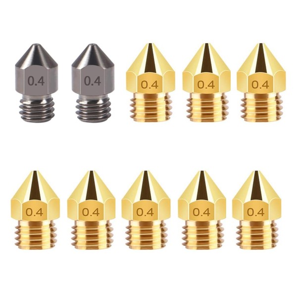 TIOPY 10pcs 0.4 mm Ender 3 Nozzle Kit 3D Printer Nozzles MK8 Brass n Hardened Steel Extruder Nozzles for Makerbot Creality CR-10