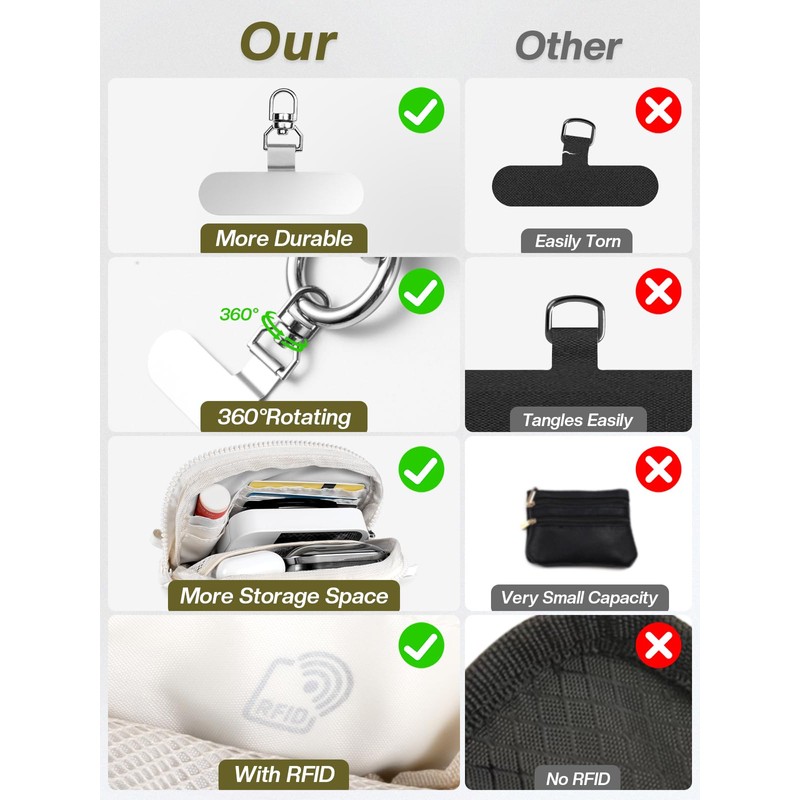 - Design Craftsmanship: This clip and go phone strap with wallet has exquisite workmanship, we have paired it with 2 pcs ultra-thin 0.3mm alloy aluminum tabs, it will not hinder the normal charging of your cell phone during use. the joint features nylon connecting cloth, which is not easy to fray and is more durable, the unique D-shaped metal ring design ensures you can DIY any object on this phone strap, the ID window-fixing strap design prevents your ID card from shifting and ensures visibility.