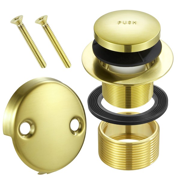 Tip Toe Bathtub Drain Conversion Kit Assembly, Tub Drain Plug Trim Set Bath Tub Drain Stopper with Two-Hole Overflow Faceplate (Polished Brass)