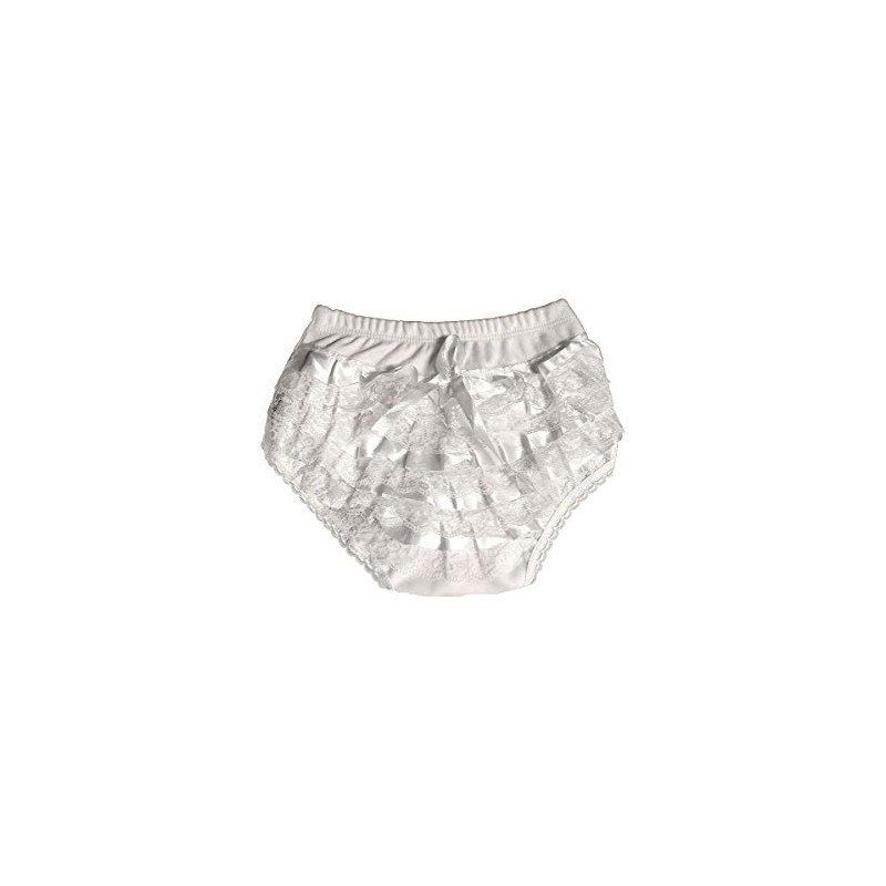 100% white cotton Elastic waist Sizes 1-3 multi lace & satin ruffle Sizes 4-6 multi lace ruffles