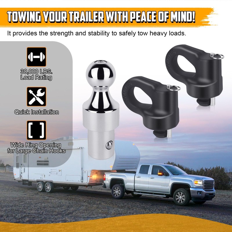 • 【Package Included】Gooseneck hitch ball kit includes: 1x 2-5/16" gooseneck ball, 2x safety chain anchors, 1x rubber hole cover.【2 Year Warranty】we offer'2 Year Warranty',for any reason you are not satisfied,we will solve your problem,resend a replacement or refund.