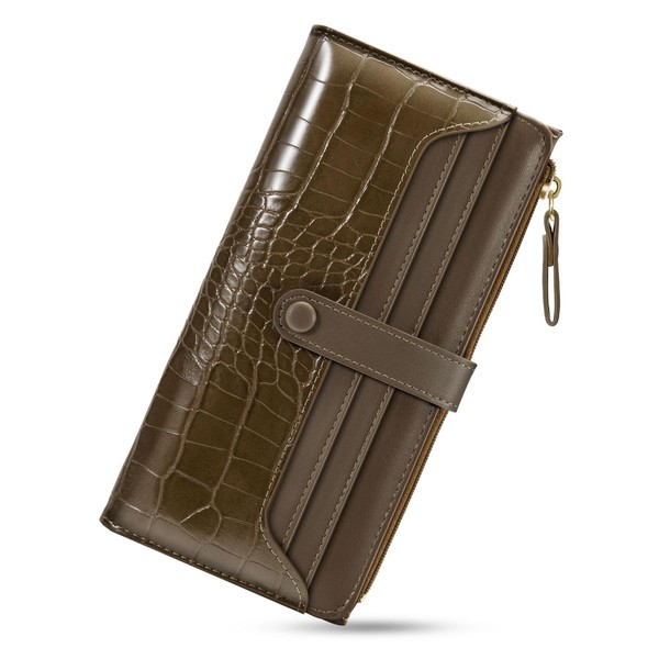 Tipmile Slim Wallet Women with RFID Blocking Bifold Leather Wallet Credit Card Holder Clutch Wallet with Zipper Coin Pocket ID Window (Minimalist, Brown)