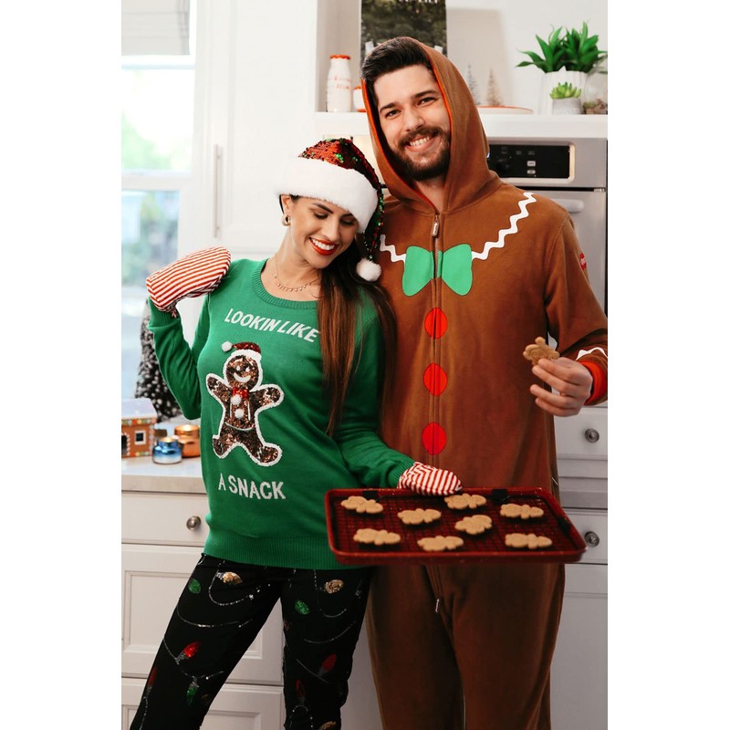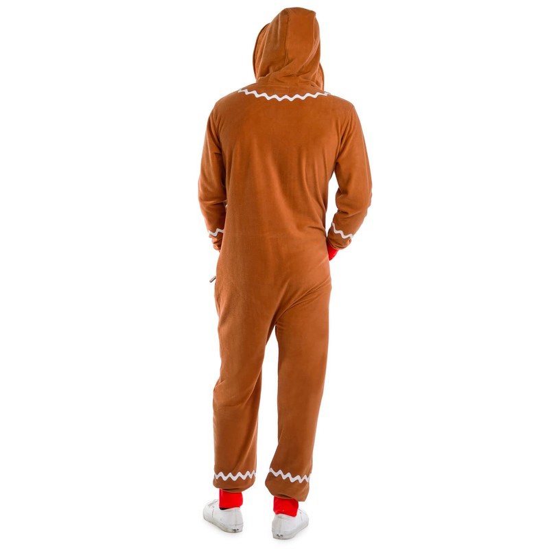 Tipsy Elves Christmas Onesies for Adults - Comfy Unisex Matching Holiday Jumpsuits with Convenient Pockets - Brown Gingerbread Christmas Jumpsuit For Women and Men Size Large