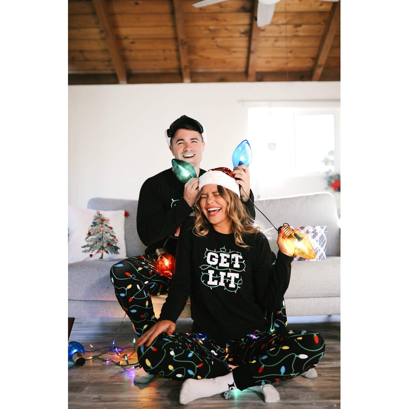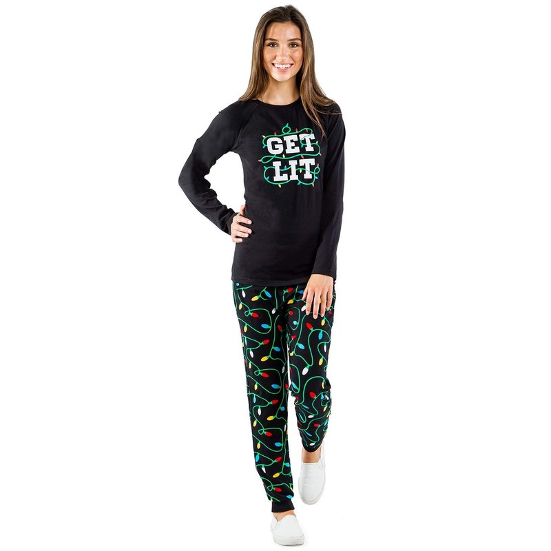 Tipsy Elves Get Lit Christmas Pajamas for Women Funny Comfy Black Pajama Set Size X Small