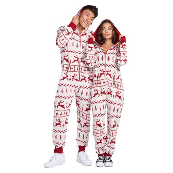 - ULTRA COMFORTABLE FEEL Our matching christmas couples onesies for adults are made with Hyper-comfy fabric for a smooth, lightweight fit and feel. Perfect for snuggling up!