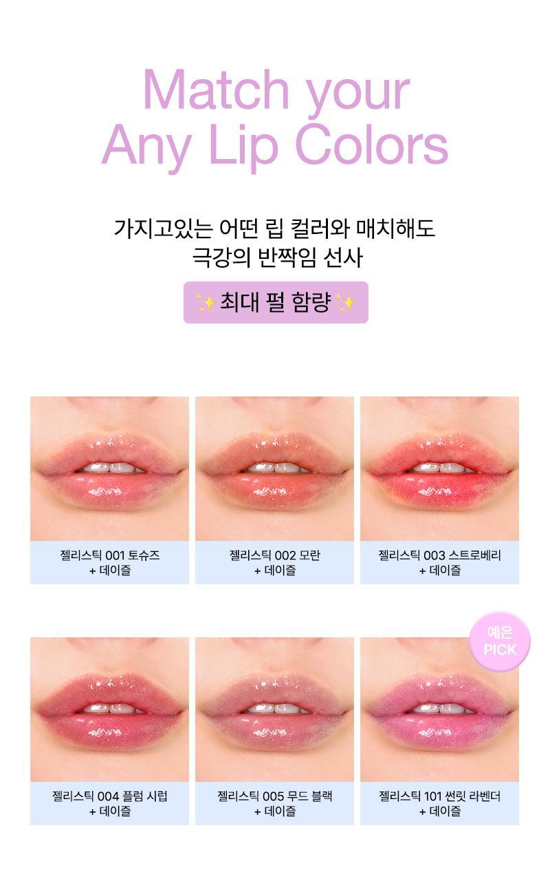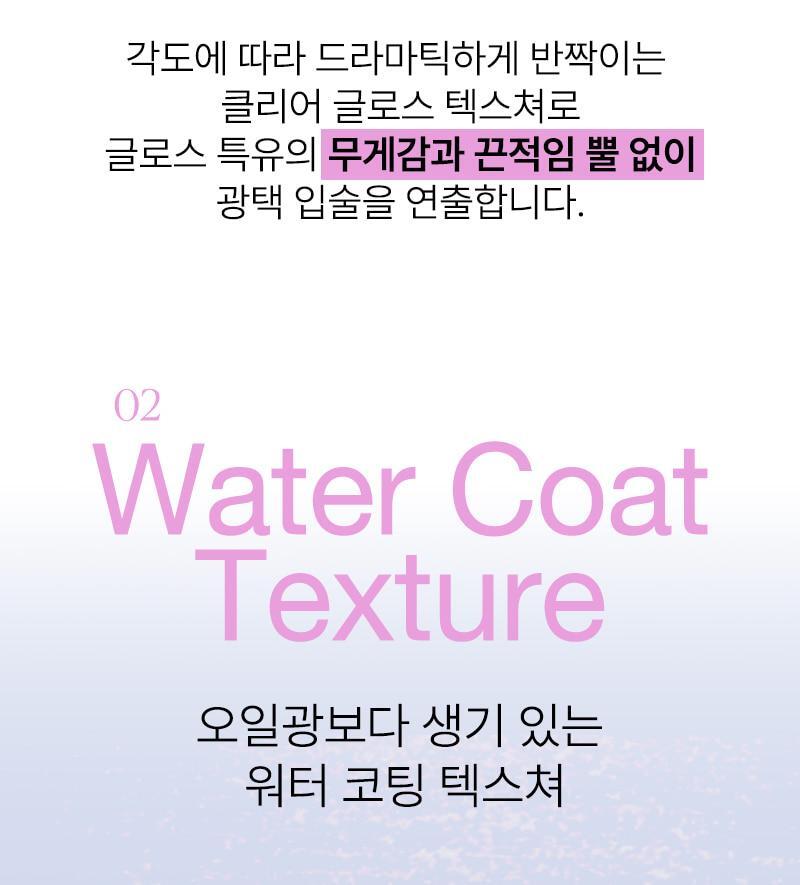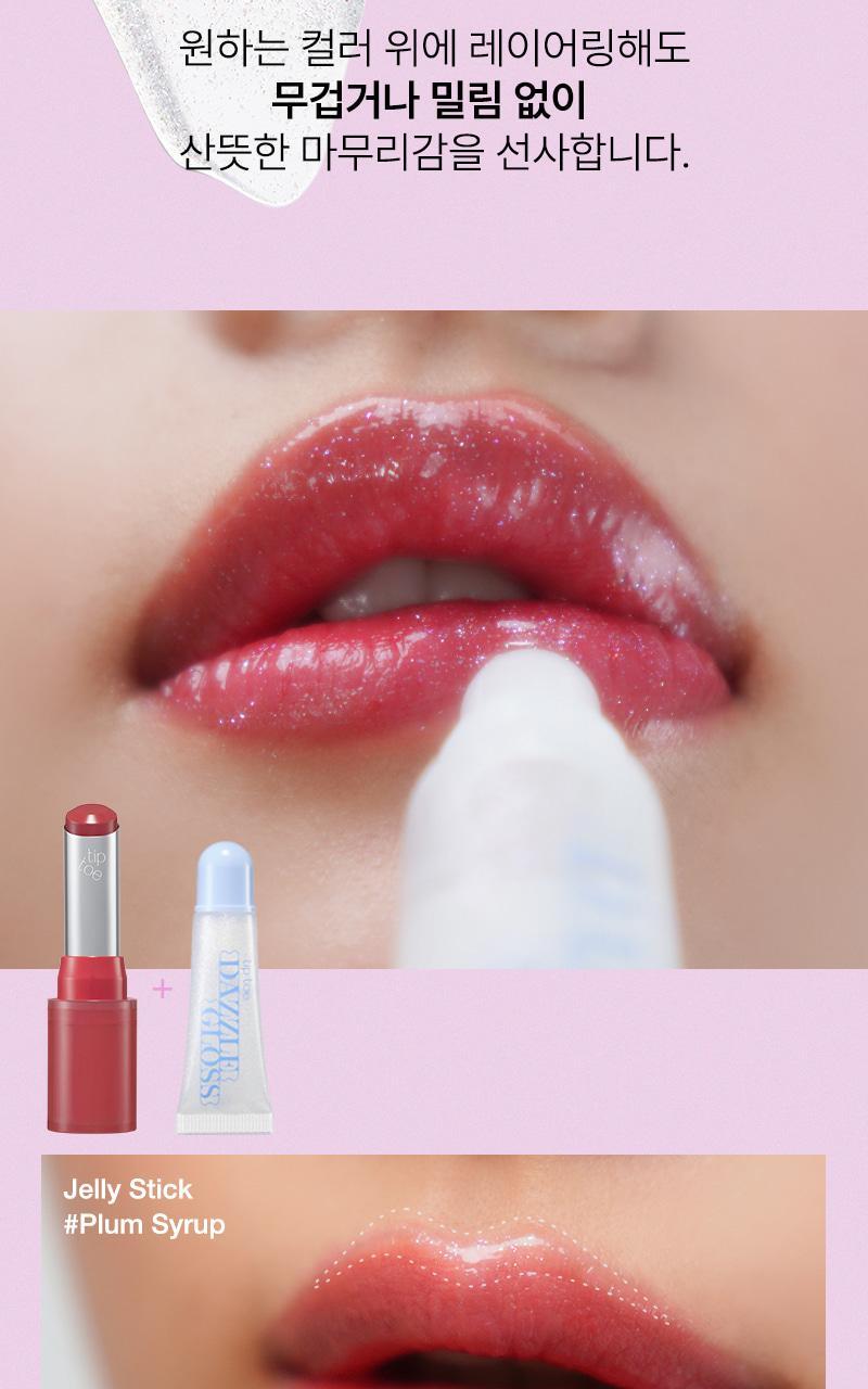 Delivers a scoop of sparkling peptides and vegan collagen to the lips. Provides an ultimate shimmer that matches any lip color you have. When matched with tiptoe Jelly Stick, it transforms into a sparkling summer juicy lip. Light texture, but a dramatic glossy effect. Showcasing a fantasy gloss fantasy with a light feel proposed by tiptoe. Shows a transparent glossy effect on the lips. A water coating texture that is more lively than oil shine. Adds moisture to the lips and provides a water coating effect with a moisturizing texture. A wearable formula that lightly adheres to the lips without sticky discomfort with an indescribable smooth and light feel. Provides a fresh and clean finish even when layered over desired colors. A mysterious glitter lip gloss that combines pink, green, and purple pearls on a clear and transparent base.